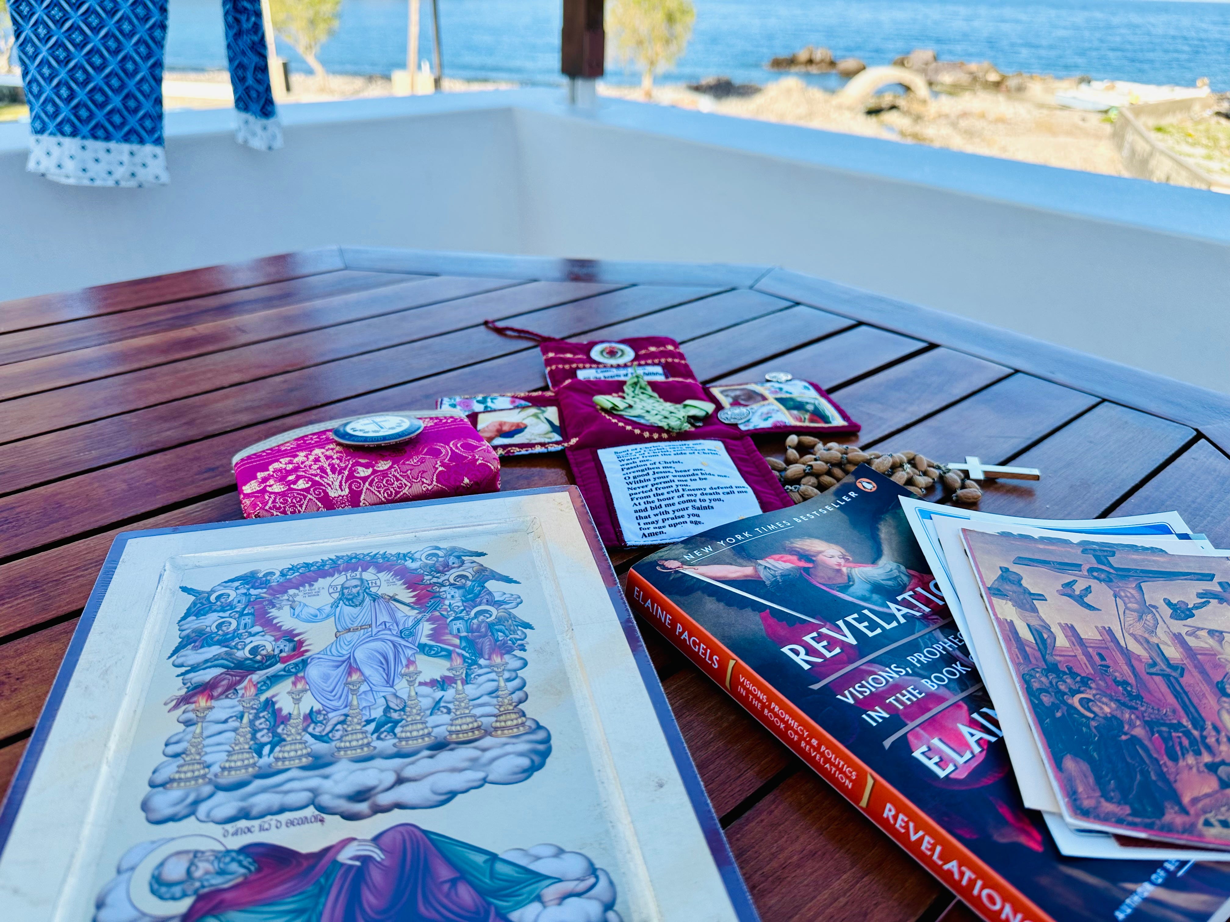 The monastery—Monastery of Saint John the Theologian—is a vessel. It hums with prayer. Cantors’ voices rise and fall like breath itself, and the air is thick with incense and the tender fragrance of spring flowers, as though heaven and earth had agreed, here at least, to meet without resistance. Within its museum, and library, treasures beyond measure are held not as artifacts, but as presences. The world with all its strife, pauses here, and is given an orientation.